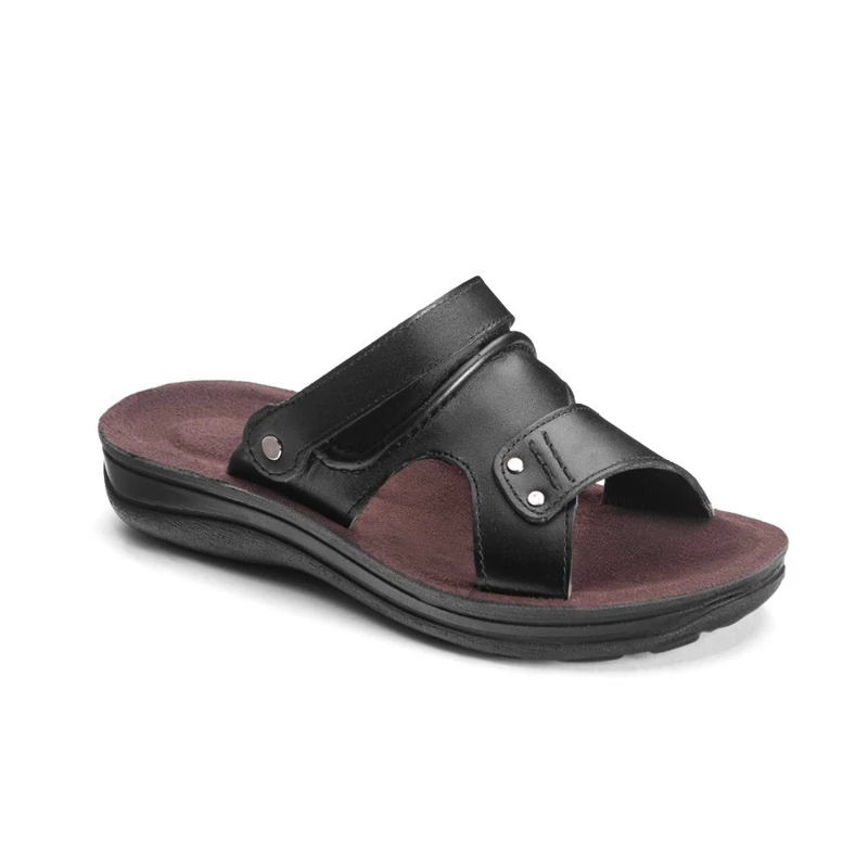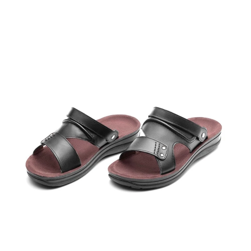 دمپایی چرم اصل تبریز با رویه چرم طبیعی، آستر چرم صنعتی، کفی سوئیت پارچه ای ضد تعریق و زیره تزریق مستقیم در رنگ های مشکی، عسلی، قهوه ای سایز بندی 40,41,42,43,44,45