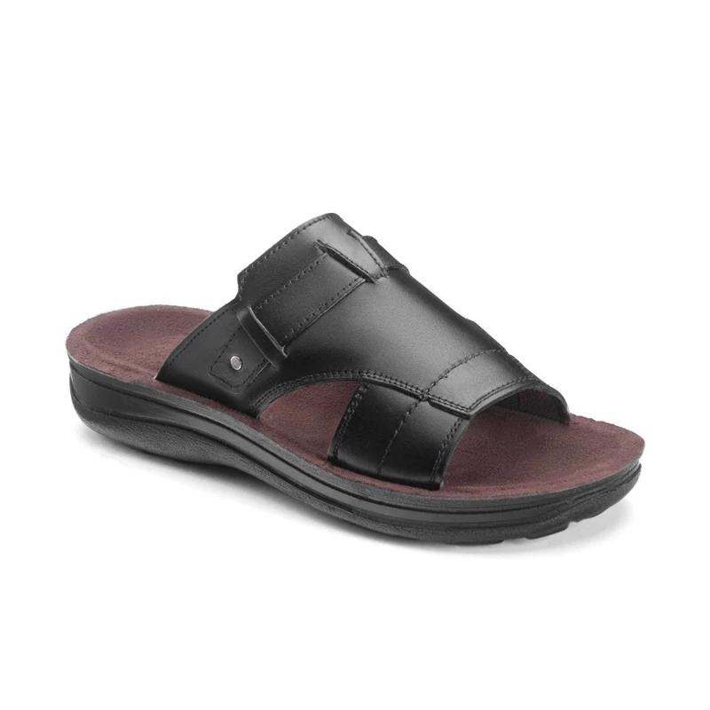 دمپایی چرم اصل تبریز با رویه چرم طبیعی، آستر چرم صنعتی، کفی سوئیت پارچه ای ضد تعریق و زیره تزریق مستقیم در رنگ های مشکی، عسلی، قهوه ای سایز بندی 40,41,42,43,44,45