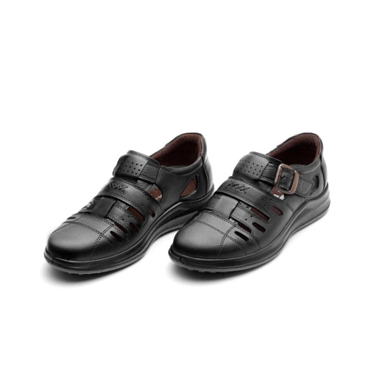 کفش چرم اصل تبریز با رویه چرم طبیعی، آستر چرم صنعتی، کفی سوئیت پارچه ای و زیره تزریق دو رنگ در رنگ های مشکی، عسلی، قهوه ای سایز بندی 40,41,42,43,44,45 نحوه بسته شدن به صورت بی بند