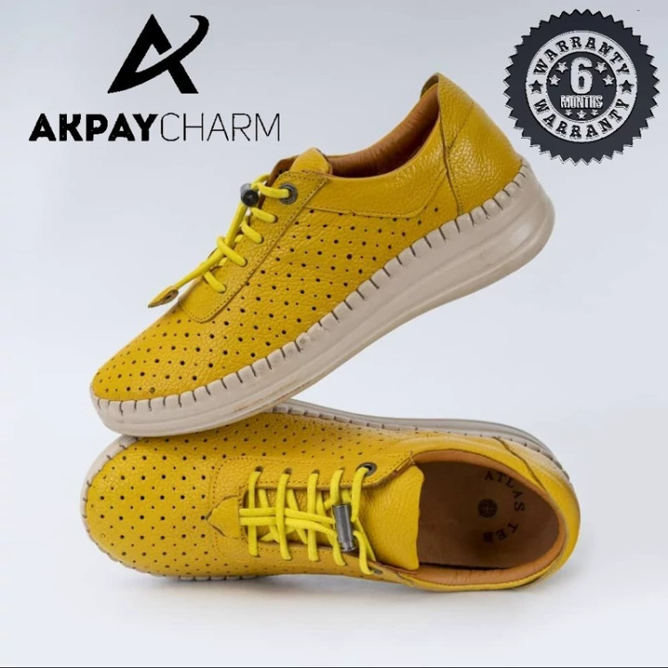 کفش اسپرت زنانه تمام چرم طبیعی بهاره زیره ترمو کژوال زرد مناسب فصل گرما مدل 11010
