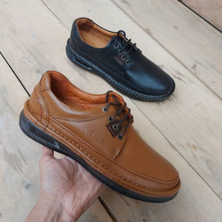 کفش طبی چرم طبیعی سایز 40 الی 44 با کفی چرم طبیعی در رنگبندی مشکی و عسلی بندی و کشی