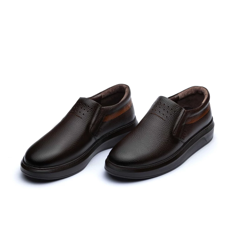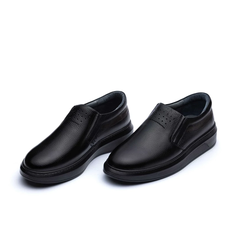 کفش چرم روزانه مردانه کارا مدل الیور بی بند زیره پی یو کفی طبی چرم طبیعی