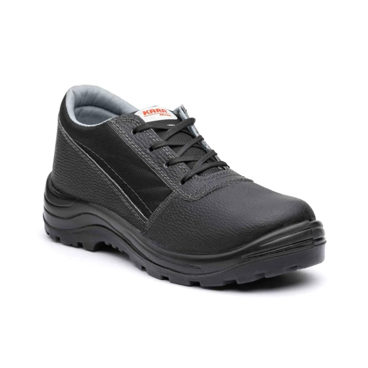 کفش چرم ایمنی اصل تبریز با رویه چرم اشبالت، آستر پارچه ای سه لایه ابردار، کفی سوئیت 2 تکه و زیره پی یو
