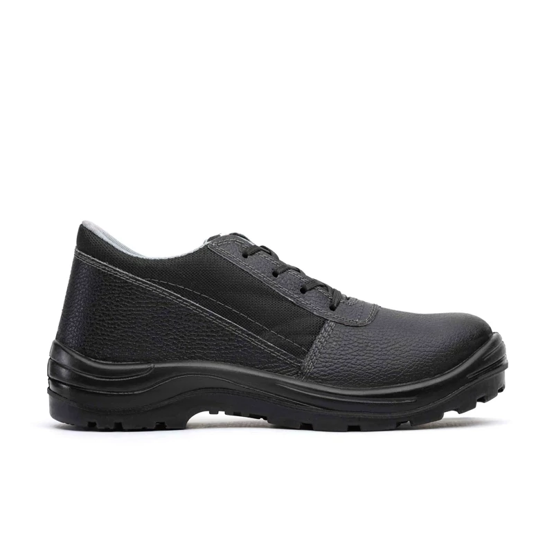 کفش چرم ایمنی اصل تبریز با رویه چرم اشبالت، آستر پارچه ای سه لایه ابردار، کفی سوئیت 2 تکه و زیره پی یو