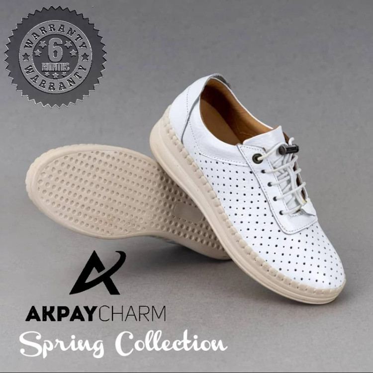 کفش اسپرت زنانه تمام چرم طبیعی بهاره زیره ترمو کژوال سفید مناسب فصل گرما مدل 11010